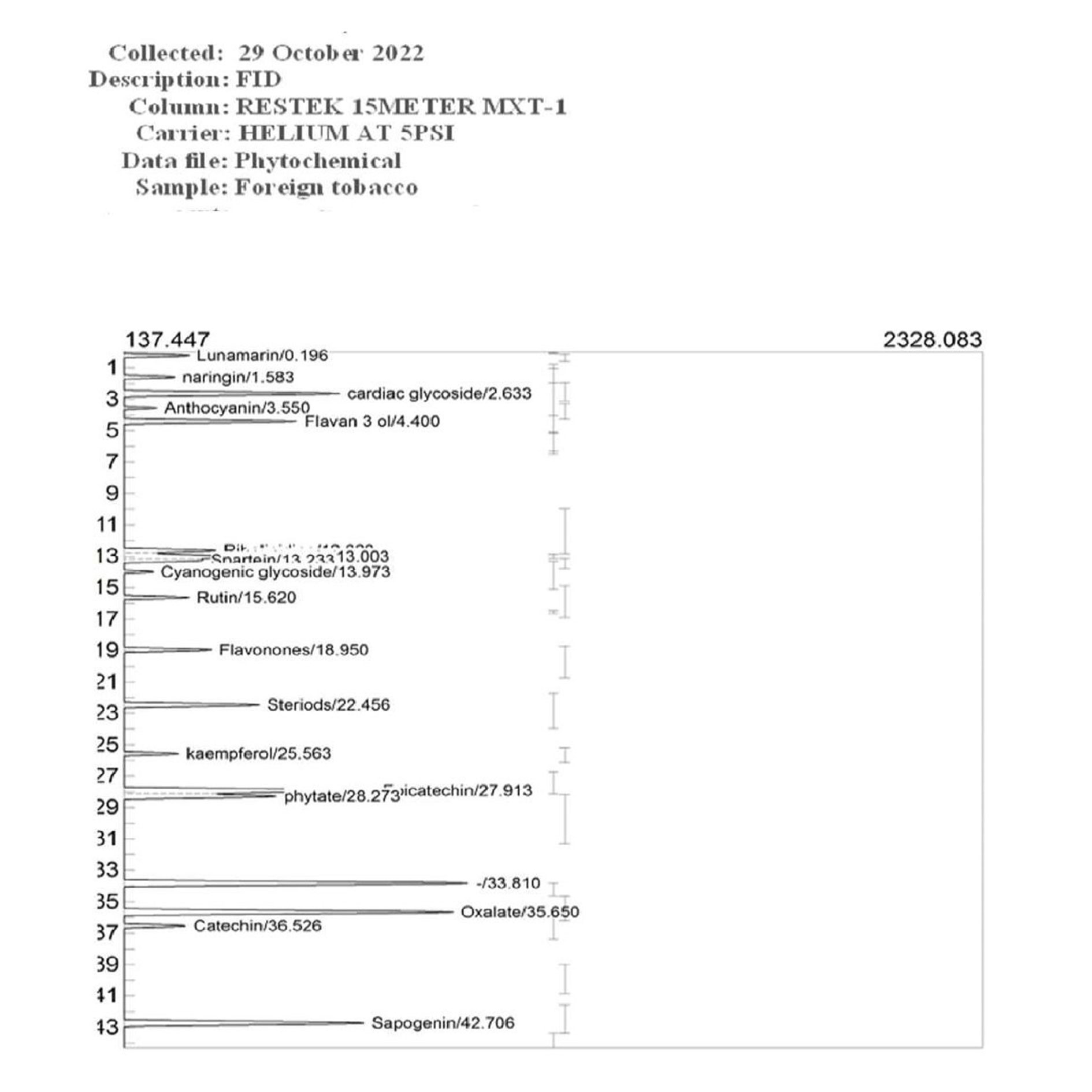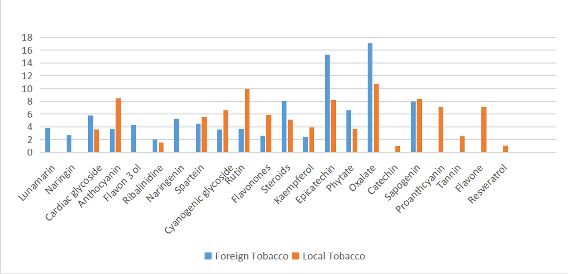 Table 1. Comparison of absolute concentration of phytochemicals in foreign and local tobacco extracts: A quantitative analysis. |