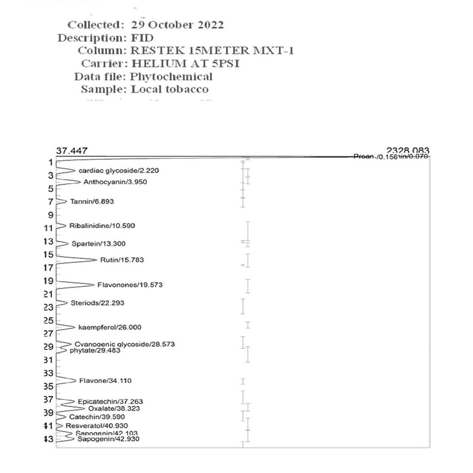 The specific objective of the study was to analyze and compare the phytochemical composition of dried leaf extracts of foreign and Nigerian locally grown varieties of Nicotiana tabacum.
